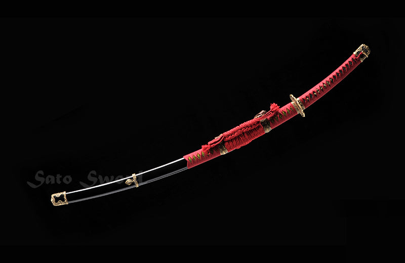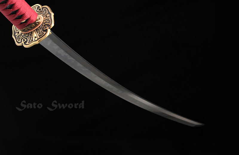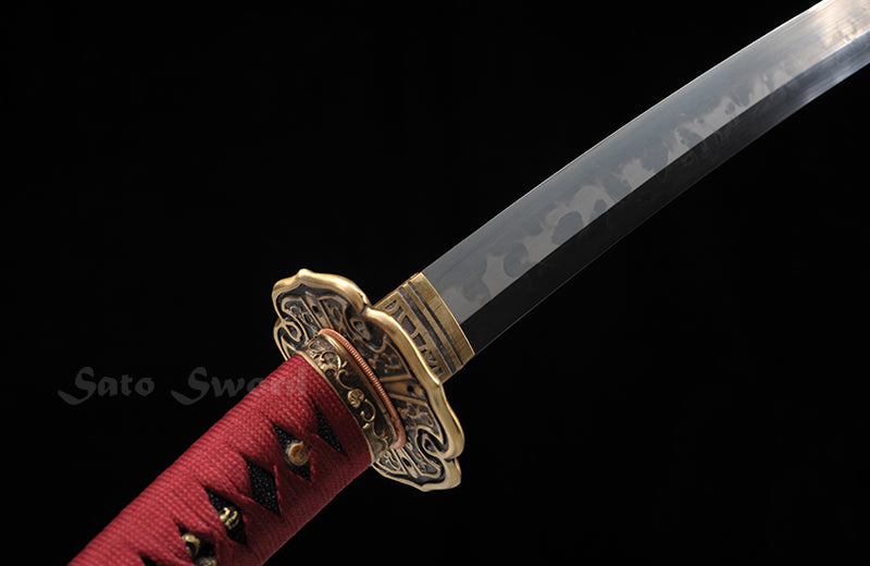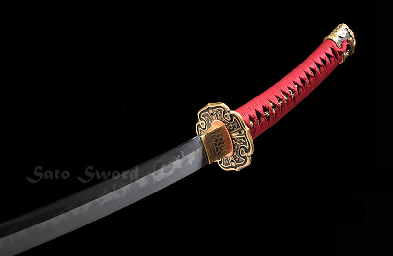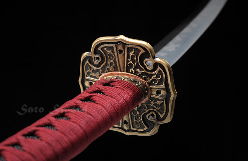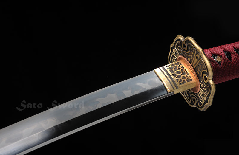 Bearing the soul of high carbon steel, the sword's core echoes with ancient secrets, brought to life through traditional hand-forging techniques. A true confluence of art and science, the blade undergoes the alchemy of clay tempering, giving birth to a mesmerizing real hamon – a testament to the journey it has undertaken.