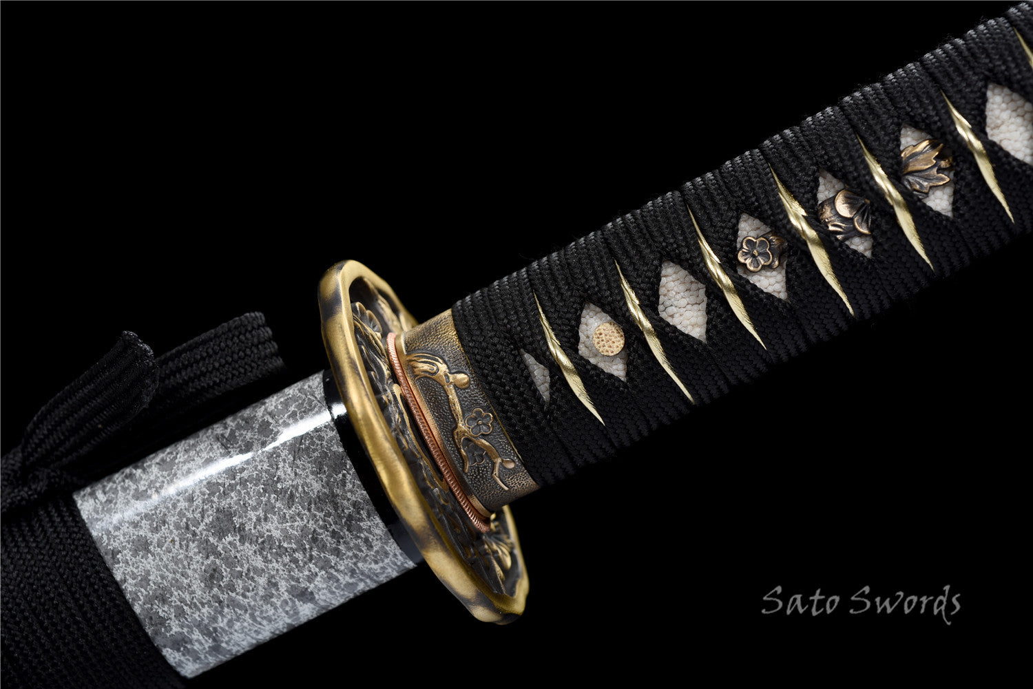 - Tsuka (Handle): Wrapped in Authentic Rayskin, Enveloped in Japanese Cotton Ito, Adorned with Exquisite Menuki Ornaments